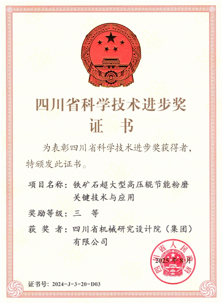 近日,2024年度四川省科學(xué)技術(shù)獎勵大會在成都舉行,川機集團(tuán)參與的“電子裝聯(lián)關(guān)鍵精密件數(shù)智化制造技術(shù)及應(yīng)用”項目和“鐵礦石超大型高壓輥節(jié)能粉磨關(guān)鍵技術(shù)與應(yīng)用”項...